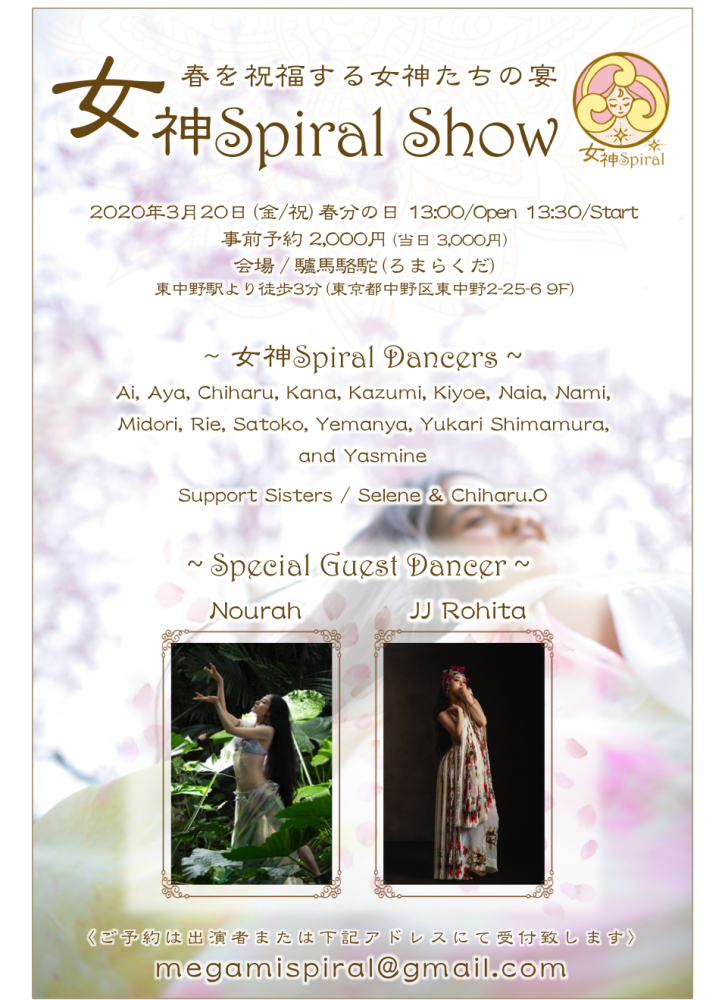 今年も春分の日、3月20日(祝日・金)に 女神 Spiral Show を開催します!「1人1人が女神であり、アーティスト」をコンセプトに、それぞれの輝きと個性が花ひらく、春の宴。 そして今年はと...