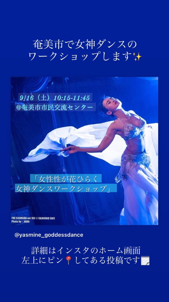 名瀬で「女性性が花ひらく女神ダンス」のワークショップを9/16(土)の午前中に開催します✨